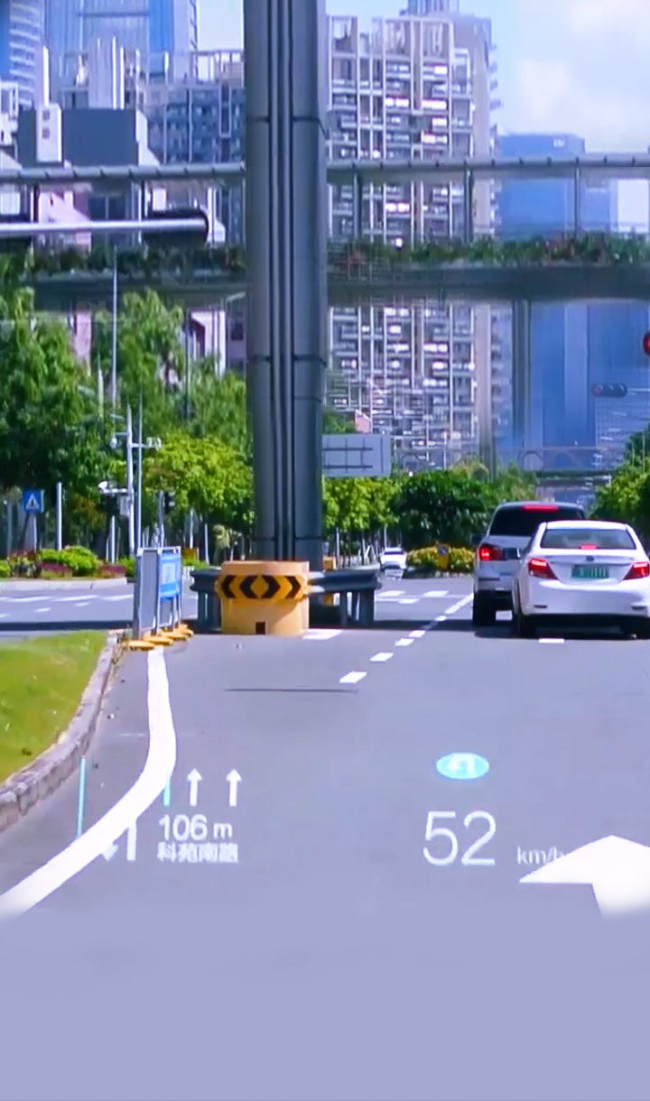 基于復雜變量環境完成大尺寸、小體積的光機設計,并采用多數據融合算法實現導航、ADAS等輔助駕駛信息在真實路況上的疊加、融合顯示,提升駕駛安全性的同時給予更酷炫、更智能的駕駛體驗。
